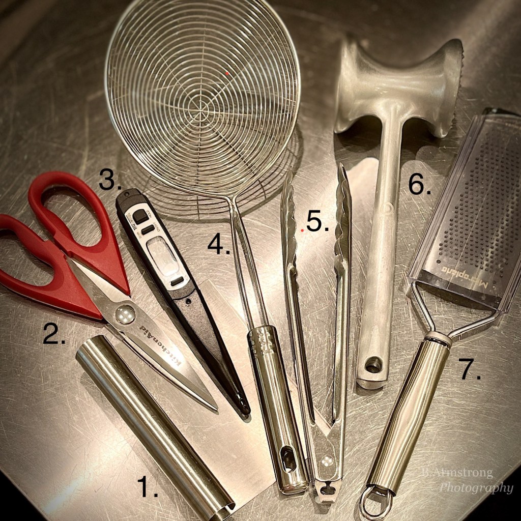 I learned from Mother to always hold a kitchen tool first, practice, and see how it feels in your hand. If it didn’t suit her royal left-handedness, it was destined for the penalty drawer. (We all have that drawer – it’s at the bottom, doesn’t open all the way because of the potato masher and you usually close it with your foot.) It is a very “Princess and the Pea” approach, but quite effective. So I built my stash one by one and perhaps that’s why they all have their special names.