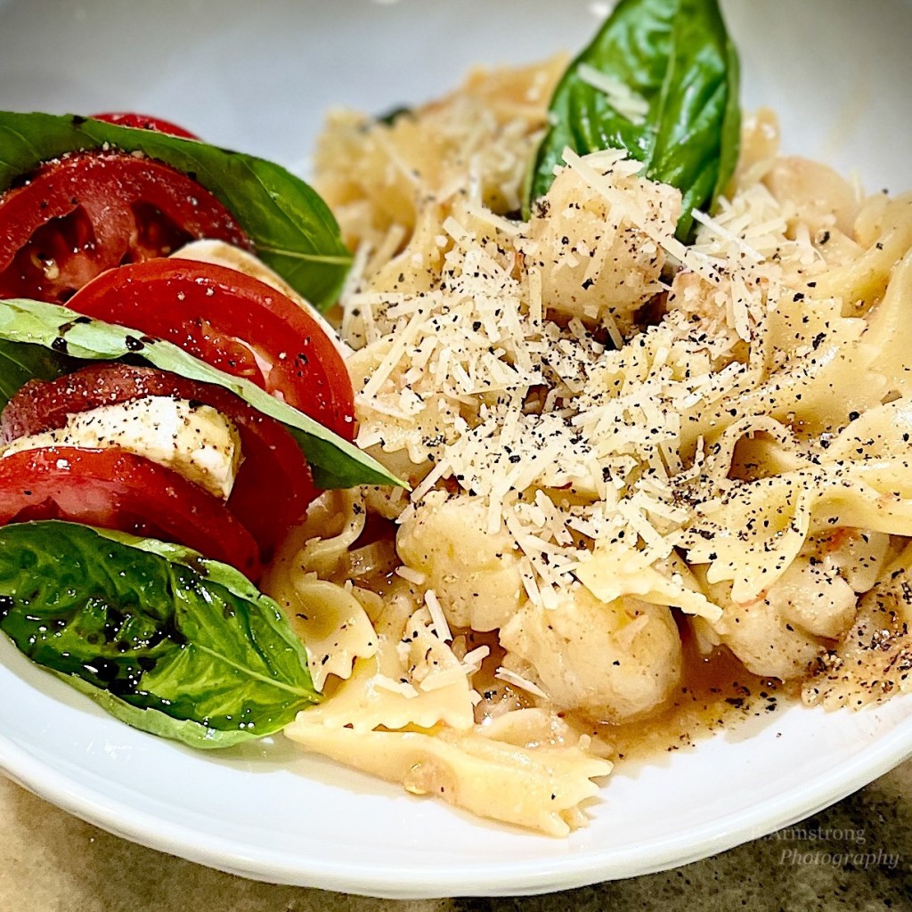 Then over the weekend, I riffed on a fresh tomato and basil pasta recipe with some buttery seared scallops and our now-standard caprese. But first I should mention there is this thing I have about music, for which I can mostly thank Daddy. It’s not musical ability or mathematical understanding of composition and theory, and I have no deep knowledge or trivia-level recall. It’s simple, basic love and something I’d nearly forgotten until I needed it the most a few years ago. Armed with Spotify and Apple Music I created a mobile soundtrack for my life and even wired my house to follow me from room to room. But it’s in the kitchen where I am most inspired by the musical companionship I’ve collected over 50 years.