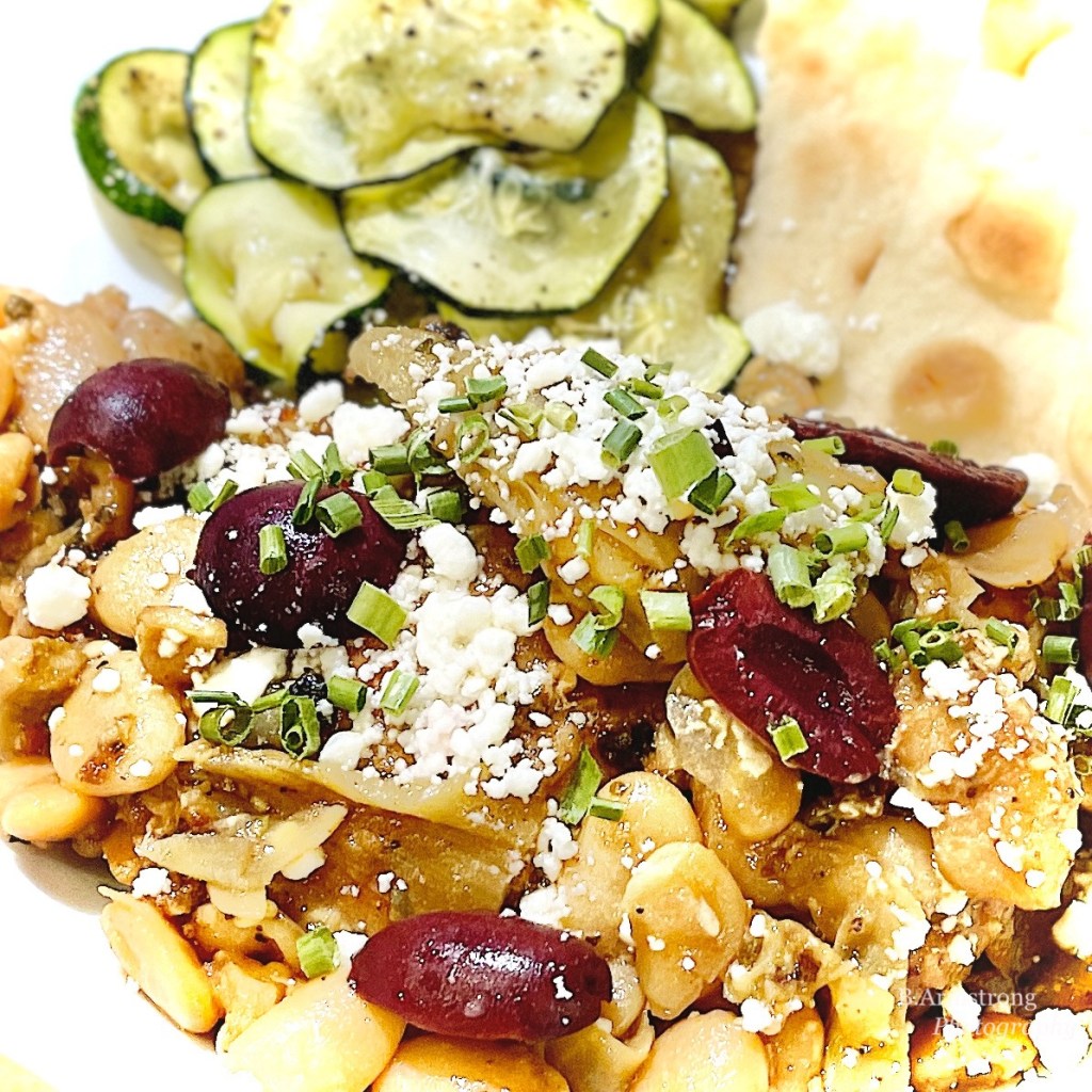 By Monday Sous Chef was back at my side for a simple Greek skillet dinner that rightly assumed I had artichoke hearts and white beans in the pantry. Quick side note: as I began to progress in my cooking, and by that I mean putting in the time to read and learn, gathering good, fresh ingredients, and daring to be daring, I also began to collect favorite tools. As I made this list I laughed out loud because I began to sound like Steve Martin in The Jerk. If you are a favorite tool, you are stored within arms reach, you are always hand-washed and you are named. Remember Stanley, my standing mixer? Personifying my weapons was silly, but remarkably strategic. When times seemed dire, I knew I could get a smile from Sous Chef by asking him to toss me Jed Clampers.