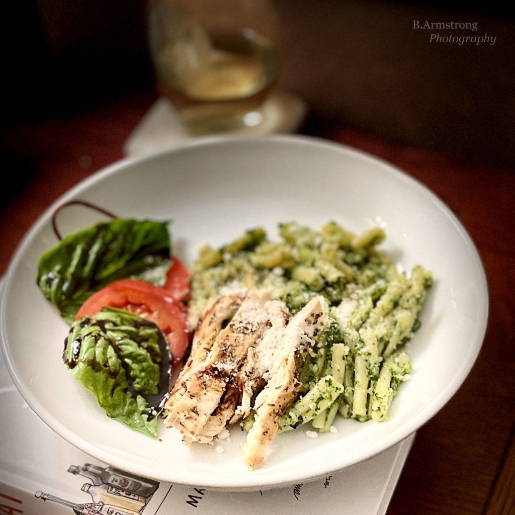 This is really billed as a vegetarian plate, and I agree it would pass muster any night of the week. However I had some leftover grilled chicken which needed a soft and supple landing pad. And remember my commitment to eliminate carbs? Yeah, that didn’t happen. But I have greatly reduced their presence on my menus…except this night when I cooked enough to feed an army. I actually invited Louise of the East over to dine with us and still had three meals remaining. She won the invitation because she is an excellent cook, speaks Italian and wouldn’t say a word about the ridiculous amount of garlic breath we exhaled. I say that “I actually invited” because I almost never cook for anyone. I’m real nice that way.