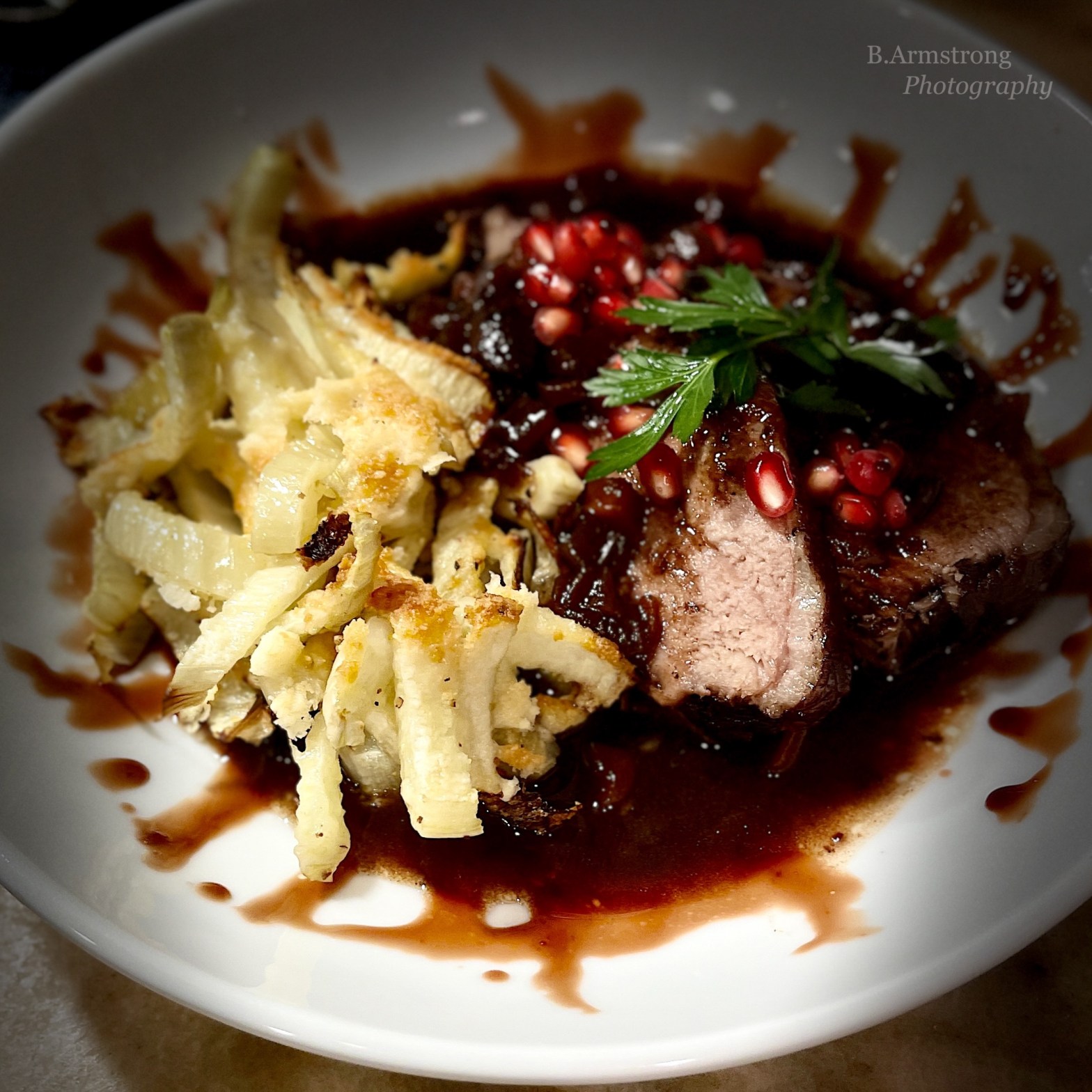 I love my brisket, I really do, but growth requires change…plus I found a giant boneless leg in August at 30% off which I froze with a big label reading “for Rosh Hashana.” I chuckled with satisfaction and anticipation every time I opened the freezer. This recipe, based on Ina Garten’s Four Hour Lamb, is quite similar to my brisket – a yummy sweet and sour sauce infusing tender, flavorful meat. The lamb was rich and succulent to begin with, so braising in red wine, herbs and pomegranate juice took it into the decadence category. There are other versions of this lamb that call for pomegranate molasses, a syrupy reduction much like a balsamic glaze. I made that too (duh) but judiciously swirled it around just the rim – talk about gilding the lily.