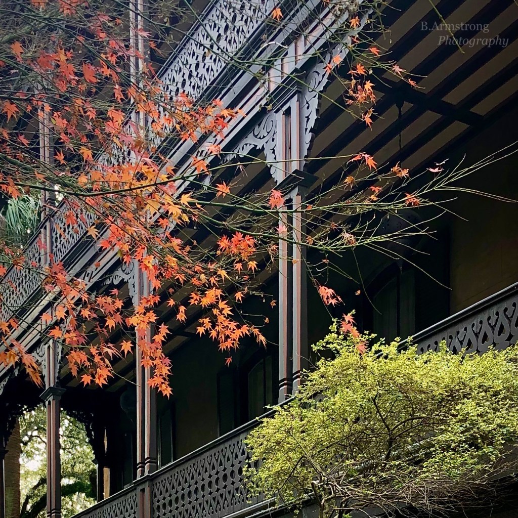 During the nineties Thanksgiving often shifted from the waterfront to my parents’ house in the historic district, an 1880 Victorian with massive gingerbread porches overlooking Monterey Square. These porches essentially became the new bluff, a breezy brokered exchange between inside and out where guests gathered throughout the afternoon. Also, the bar was there. The oyster roast was relocated to the lane, the Dueling Tets took their places on opposite ends of the sideboard and the Bloody Marys were replaced by hazy, orange Tequila Sunrises. That probably explains the post-feast dance parties instead of snoozy lounging.