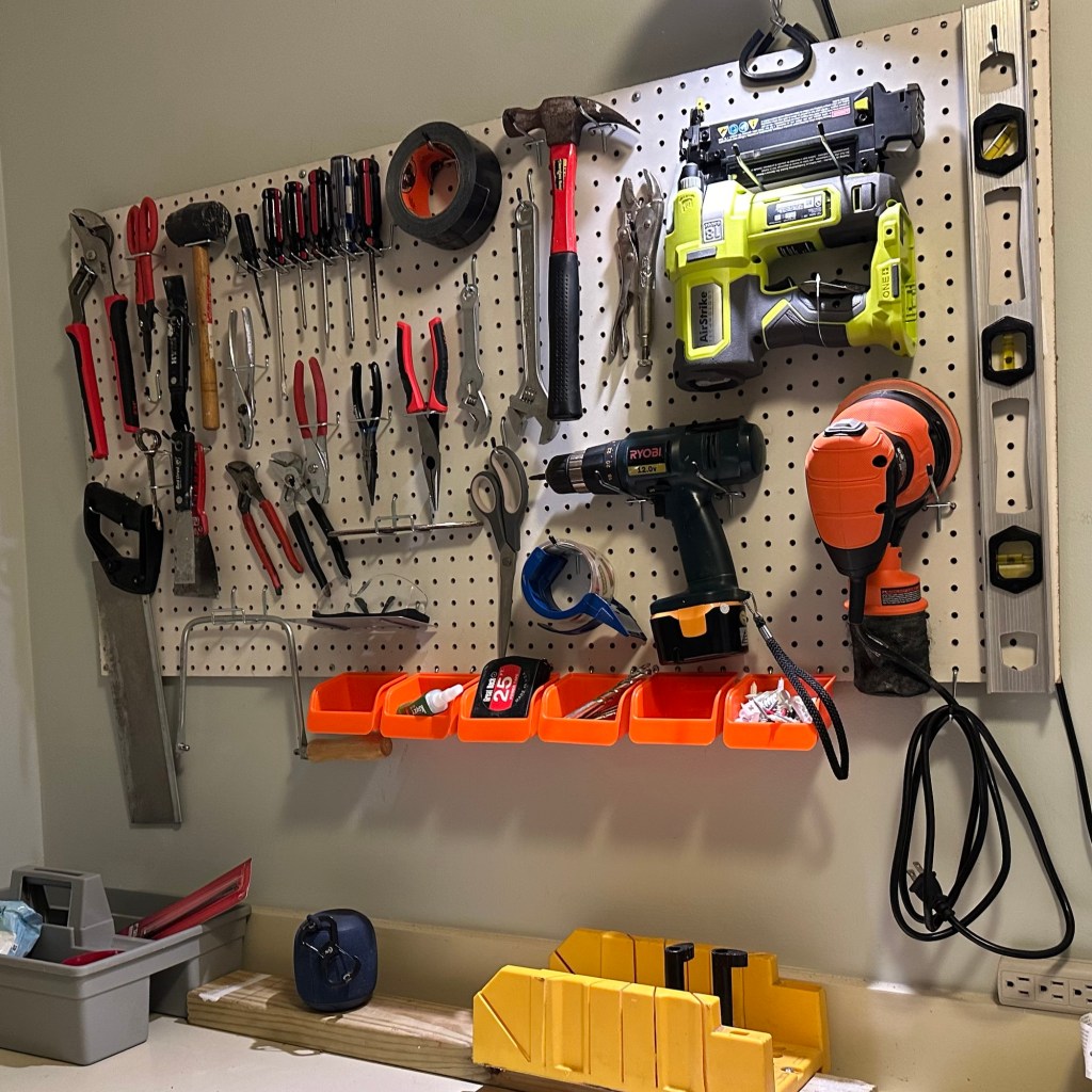 While I’m proud that I was so manual in my construction techniques, after I emerged from traction I treated myself to an orbital sander and a fancy brad nailer. I stopped there because I don’t want too many shortcuts; at least not yet. I need to feel what I’m doing so I’ll do it carefully, learn the skill, and get it right. It’s exactly like knife work – sure I have a mandolin and a mini-prep, but the tactile experience, complete with daily, accidental bloodshed, keeps me actively and meaningfully engaged. Since it was “birthday month,” Husband gave me a wide, fat end-grain cutting board which will keep me honest in the kitchen as well. But I’m totally going to get a circular saw one day.