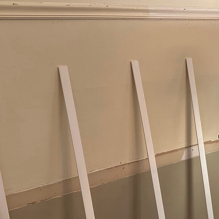 Pre-fab board-and-batten paneling can be purchased and installed in large sections, probably in a day. But where’s the fun in that? Besides, I drive a Honda which can only carry an armful of 8-foot batten strips at a time. Even with mountains of research and my new boyfriends at the local lumber yard, it still took me nearly a month to meticulously craft my vision. That level of patience was very unlike me, a fact I announced every night as I cleaned the day’s mess of wooden shards, bent nails, and dried wads of joint compound. Plus, there was the dust storm. And the caulk…there was caulk everywhere. It was always a mess – and that was very much like me.