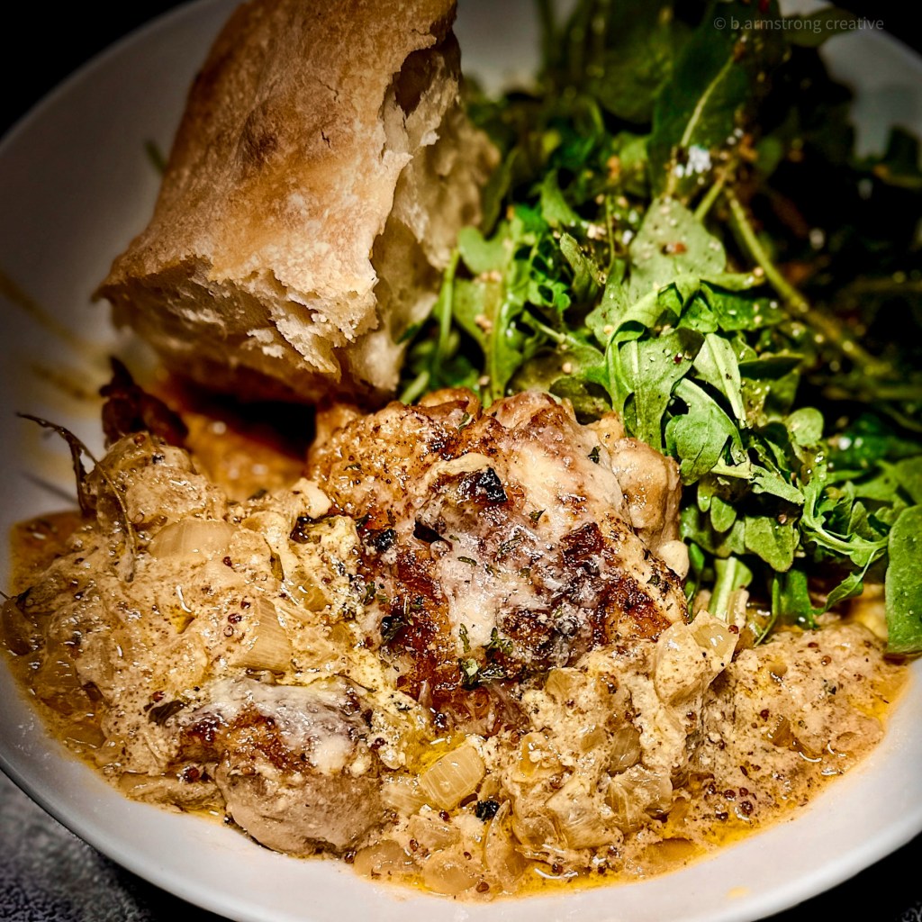 Fortunately, we are also chicken folk. A proper chicken recipe can be the perfect foil to the anxiety of choice – simple and affordable but with all the flavor and decadence of haute cuisine. For this post, I chose Poulet Gaston Gerard, a quintessentially French comfort dish with a charming, but inelegant origin story born from setback and recovery. I’d say it’s perfect for any volatile economic climate when you want to pretend that everything is fine. Gaston Gerard was the deputy mayor of Dijon in 1930 when he and his wife hosted a dinner for a famous food critic named Curnonsky. Madame Gerard was preparing a Bresse chicken when heaps of paprika fell into the pot and basically ruined the recipe. However, as a skilled cook, she averted disaster with a generous dose of crème fraîche, a dollop of local mustard, and a splash of white wine. Dubbed “Poulet Gaston Gerard,” it was a hit with Curnonsky and has since remained a staple in Dijon home cooking.
