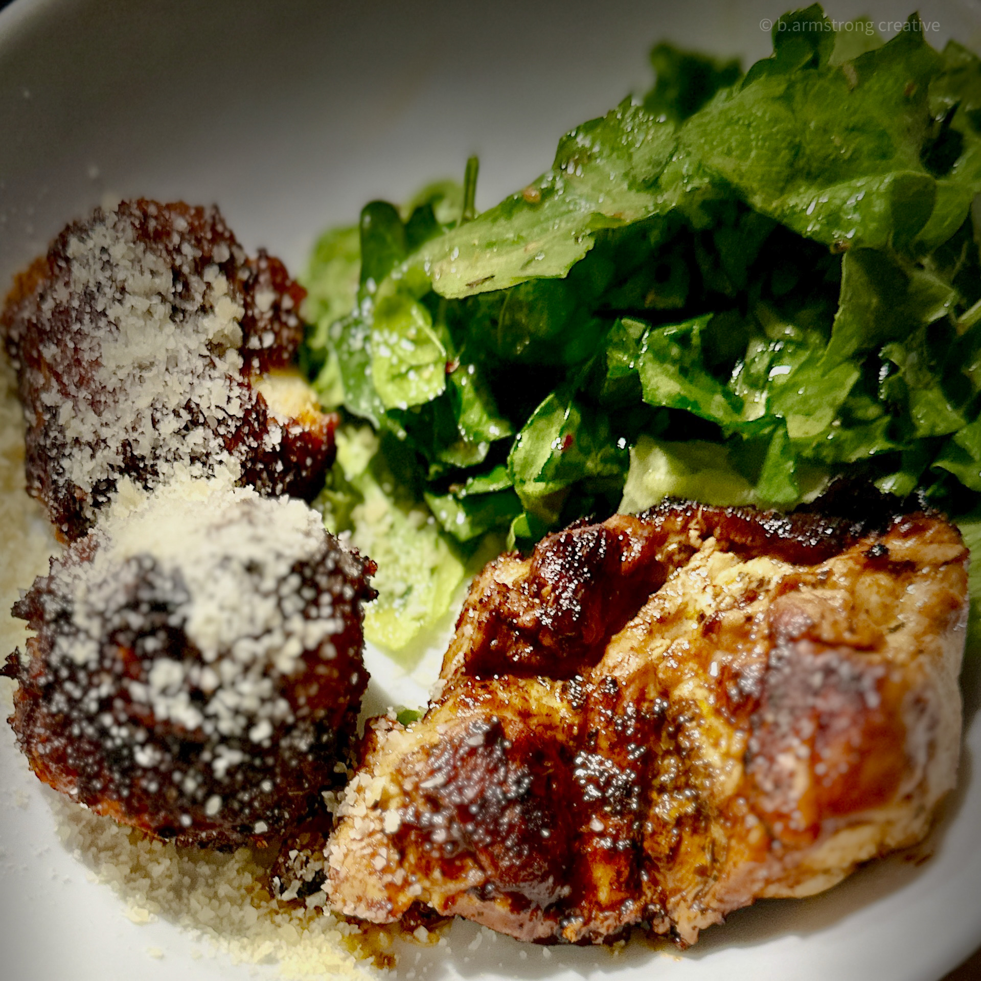 “For twenty years I have operated from a 1973 kitchen that was made for an assembly line…not a charcuterie spread, not a kitchen party, and not a cooking show. I orchestrate my creations from an old, sparsely-cabineted, poorly-designed galley with an ornery electric stovetop and a single oven. I have upgraded most of the large appliances steadily over the years, but today I take pride in my ability to outsmart a 1980s European glass cooktop that has no understanding of the word “low.” I guess that’s a little unfair – she ultimately cools down but it takes five minutes of babysitting and expletive-laced coaxing. Do I wish I had a slick designer kitchen with all the latest bells and whistles? Yes! Do I deserve it? You betcha. But do I need it? Nope…not even a little.”